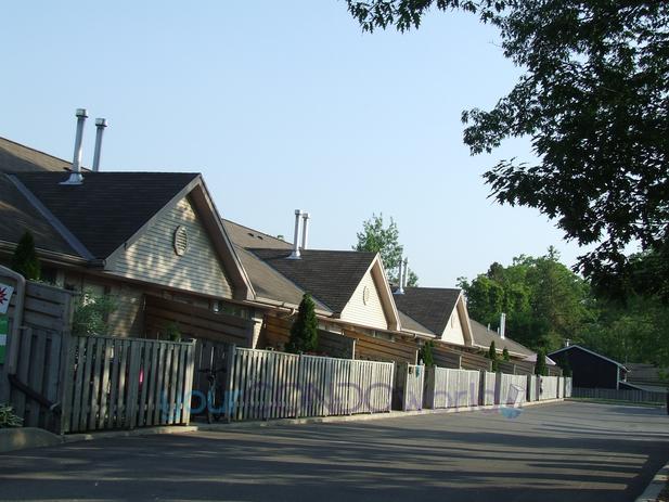 These are two-bedroom, one floor units with known sizes of 750, 830, and 960 square feet. Tan siding and trim, green/grey shingles and peaked front rooflines. Gas heat, central air, cement front porches which are fenced in. Barbeques are permitted as are pets. Assigned parking and a gazebo is on site. The condo fees in 2023 are $250.00 per month which include doors, windows, roof, ground maintenance/landscaping, snow removal and private garbage removal.